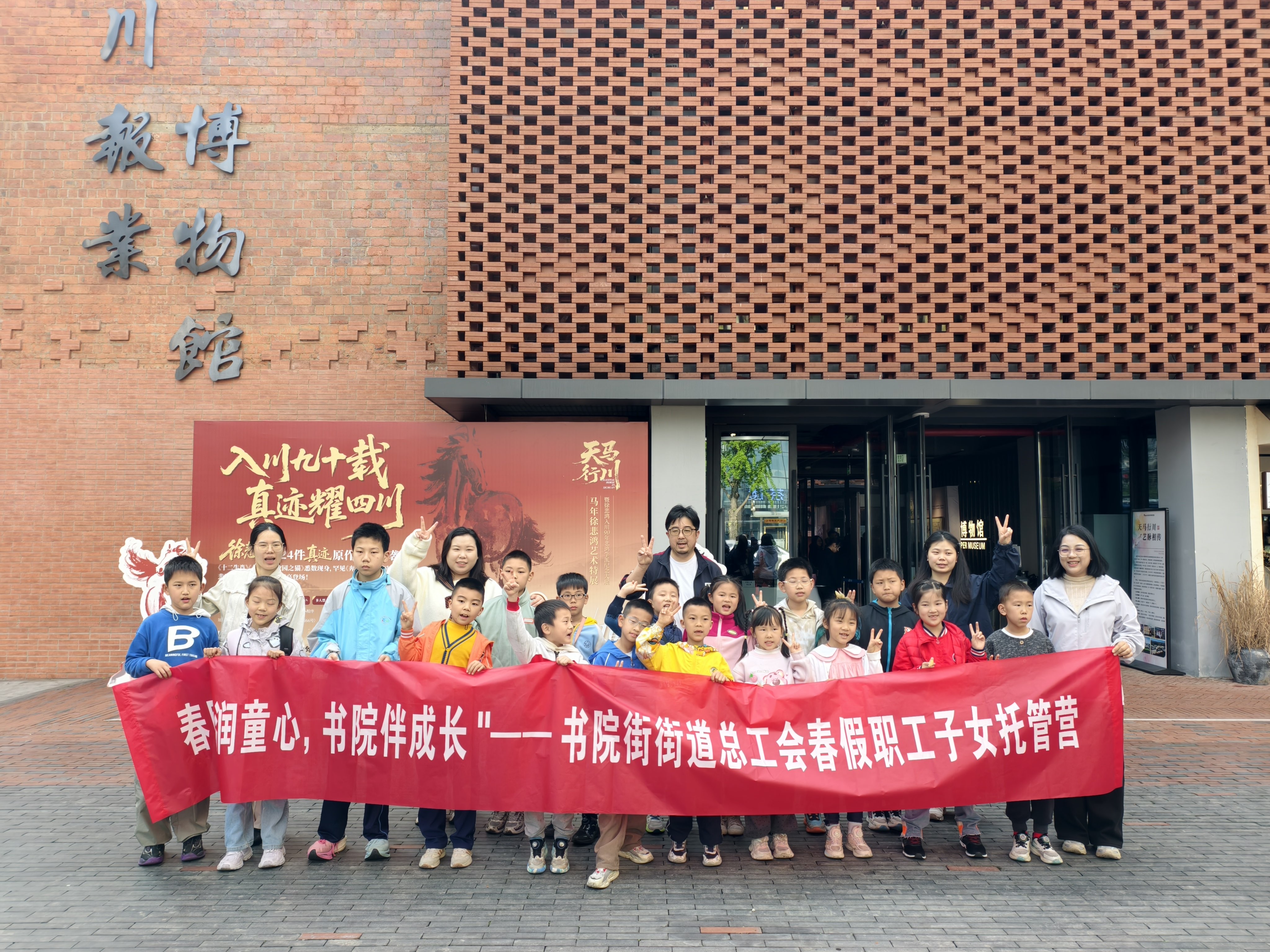 成都市书院街街道总工会组织的“春假职工子女托管营打卡马展 图据四川报业博物馆