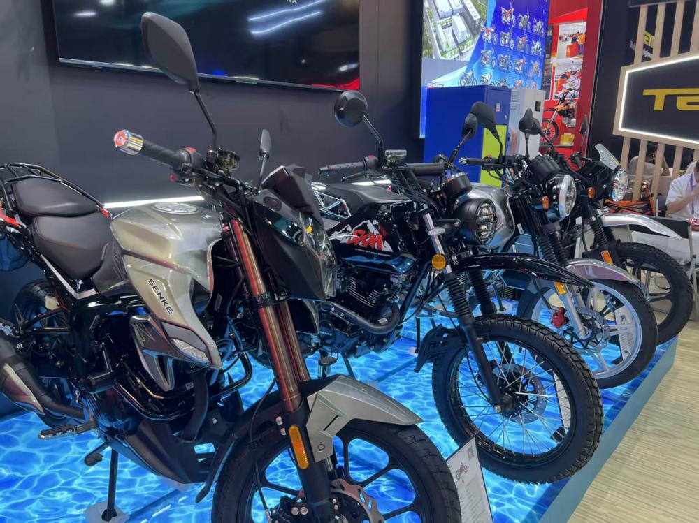 在广交会上,一众来自广东江门的摩托车企业积极求变,以拓展新的发展空间。江门正豪带来搭载增程混动技术的新一代电摩,满油满电续航达到880公里,比传统油车增加了一倍多,用户使用成本也几乎减少一半。唐赋兴向记者表示,这款车的增程技术灵感来源于比亚迪和腾势汽车的成熟方案,电机电控包括增程器都是自主研发,“增程式技术作为行业技术亮点,让我们在本届广交会上收获满满”。