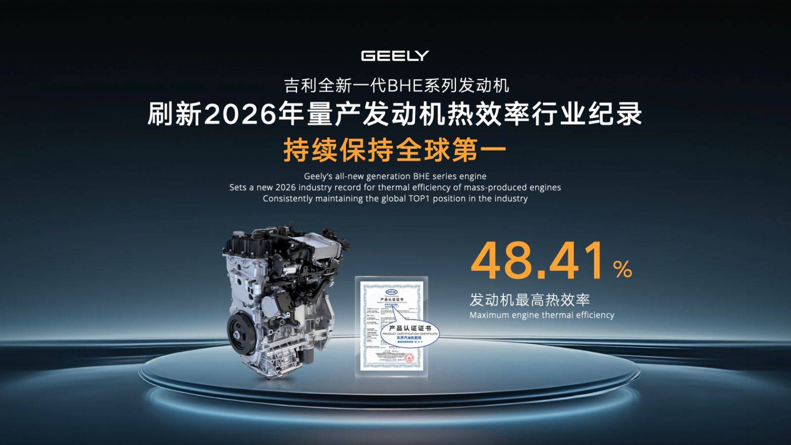 在混动系统的节能核心指标,发动机热效率上,吉利此次也在此刷新了行业记录,来到了 48.41%。